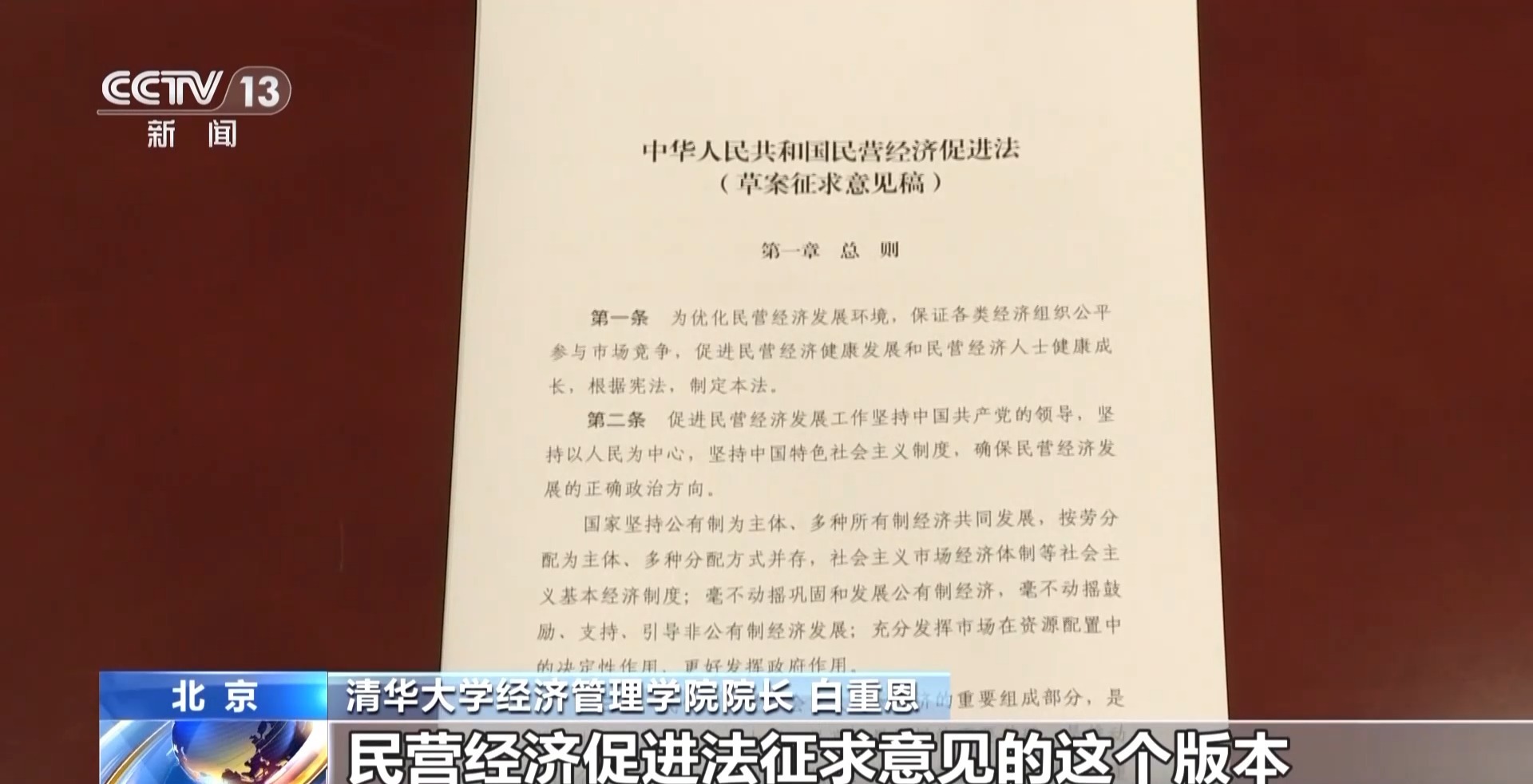 清华大学经济管理学院院长 白重恩:比如说民营经济促进法征求意见的这个版本里面,很重要的一部分就是要创造一个平等的竞争环境,让民营经济能够平等地获得要素,平等地参与政府的项目,平等地进入市场。我想民营经济是非常希望能够作出贡献,如果他们有了这些作贡献的机会,他们就可以得到更大的发展。